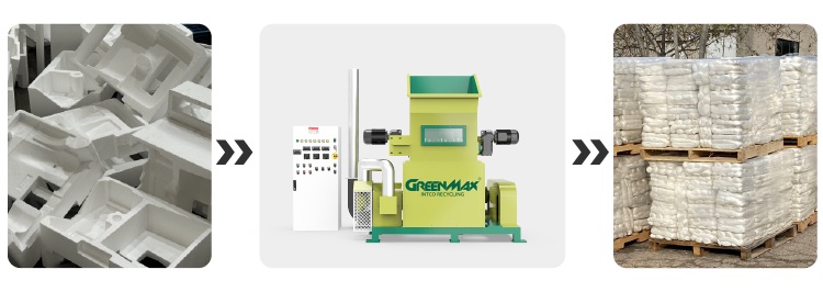La aparición de la densificadora de EPS es un gran avance en la industria del reciclaje de espuma plástica. Sin embargo, debido a la tecnología inmadura, el equipo de termofusible en la etapa inicial tiene las deficiencias de vida útil corta, mala calidad de fusión, operación complicada, accesorios fáciles de usar y rasgar y unos otros problemas. A medida que la tecnología madura, también aparecen equipos profesionales de termofusión de poliestireno. Como especialista en reciclaje de poliestireno expandido, GREENMAX le ofrece la densificadora de poliestireno expandido más profesional.
